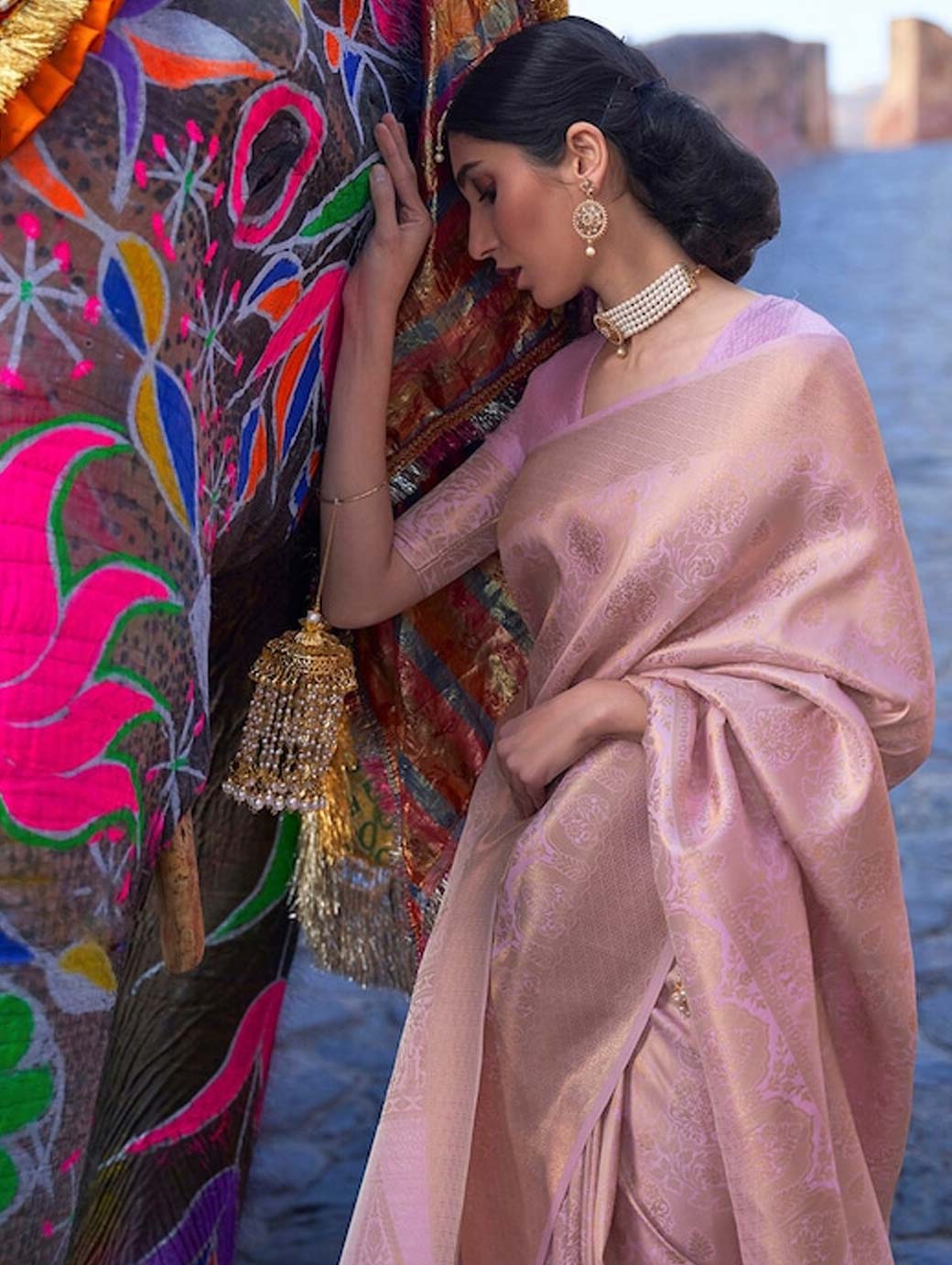 Lavender & Gold-Toned Woven Design Zari Silk Blend Banarasi Saree